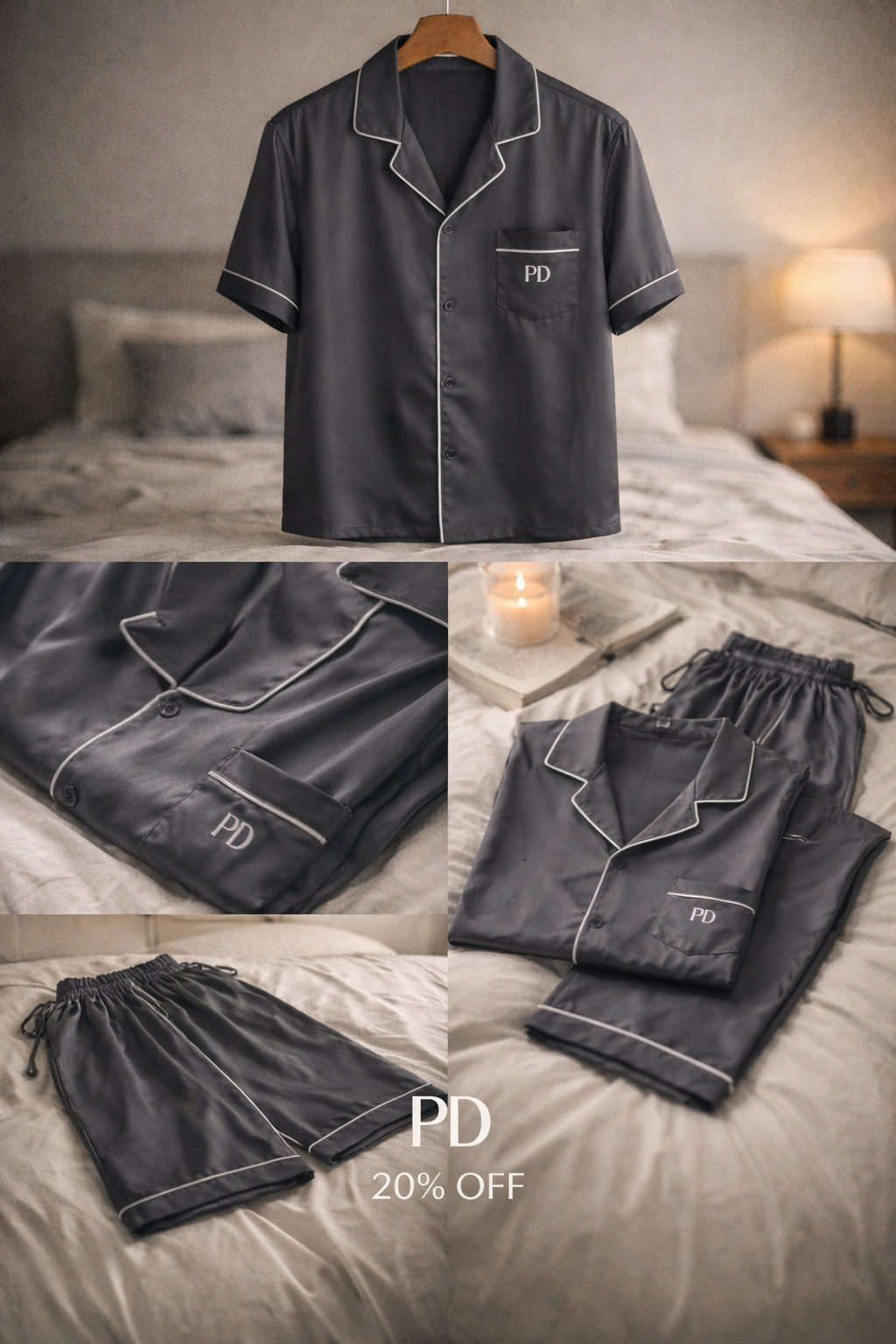 ชุดนอน PD มาเป็นเซ็ตคู่กับกางเกงนอนสีดำ ดีไซน์เรียบแต่ดูดี เหมาะสำหรับการพักผ่อนอย่างแท้จริง ใส่นอนสบาย หรือใส่อยู่บ้านได้แบบชิลๆ ลาย PD เพิ่มความมีสไตล์ให้ชุดนอน ดูไม่จำเจ